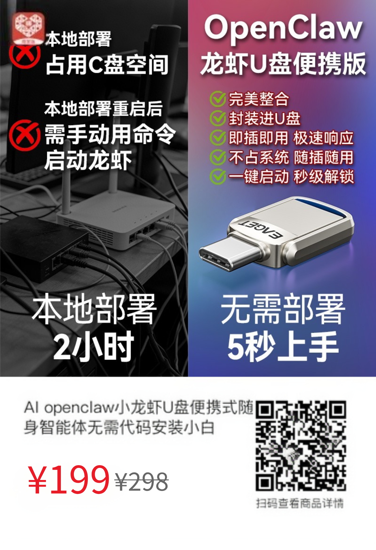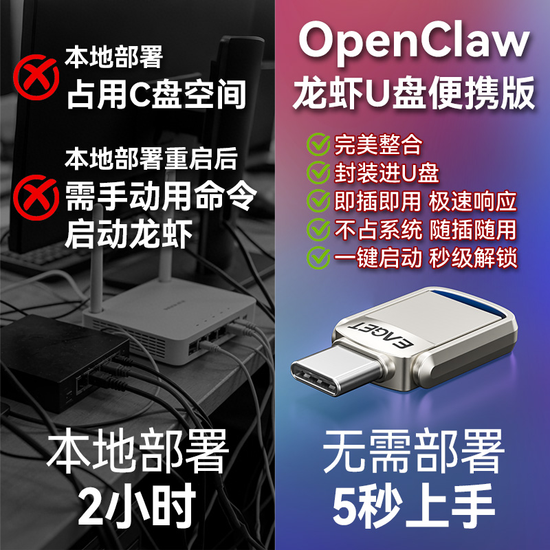 不用再熬夜看教程,不用再担心配置失败,插上U盘,即刻开启你的小龙虾之旅!