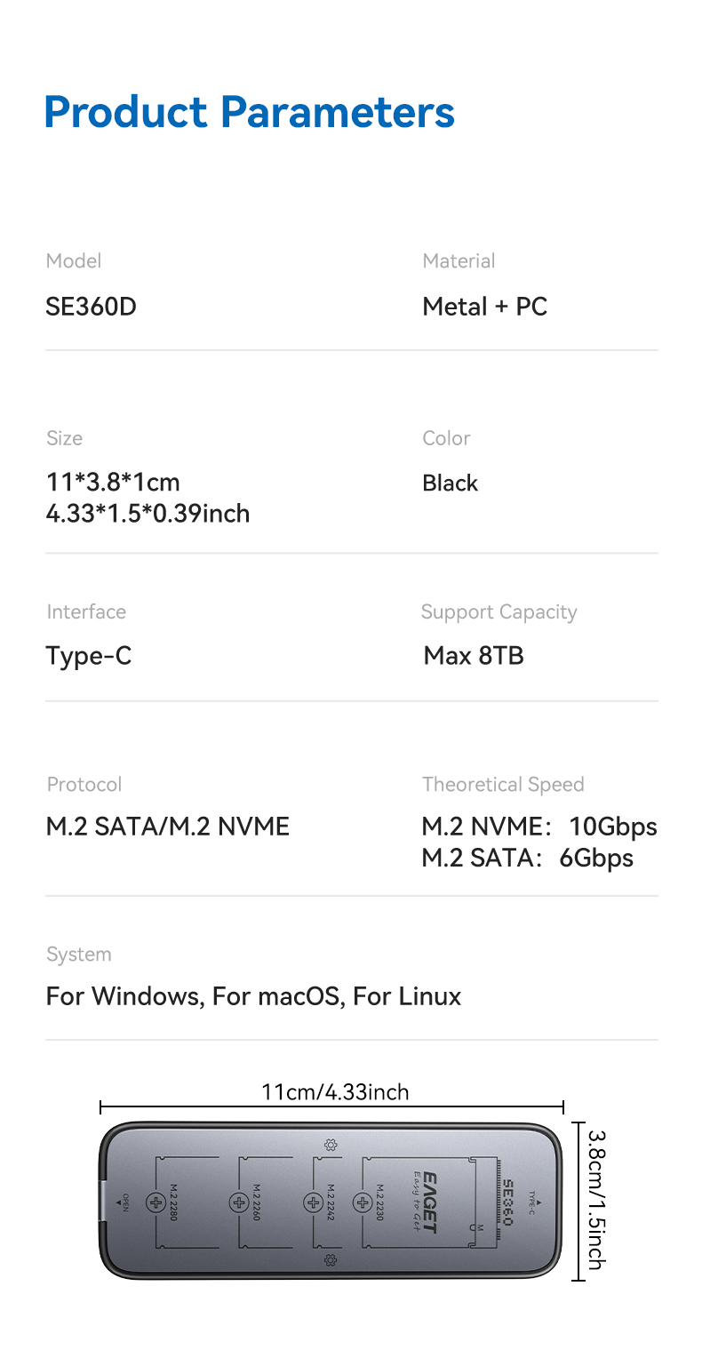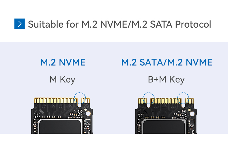 Theoretical Speed:M.2 NVME: 10Gbps;M.2 SATA: 6Gbps