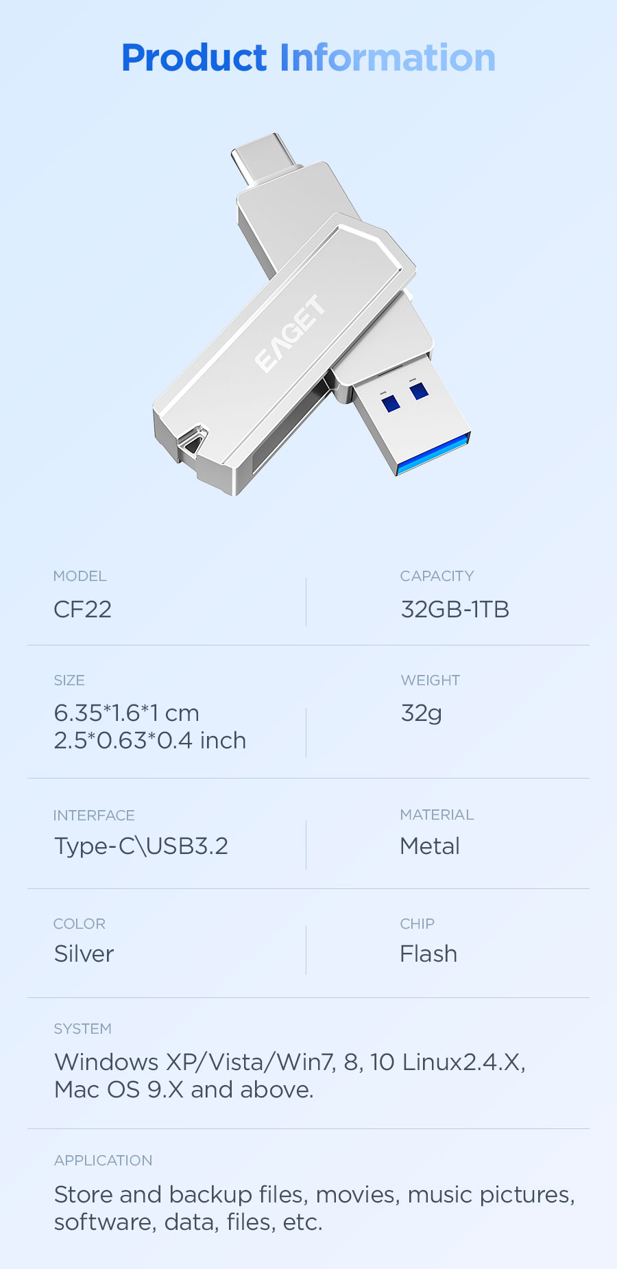 APPLICATION:Store and backup files, movies, music pictures,software, data, files, etc.