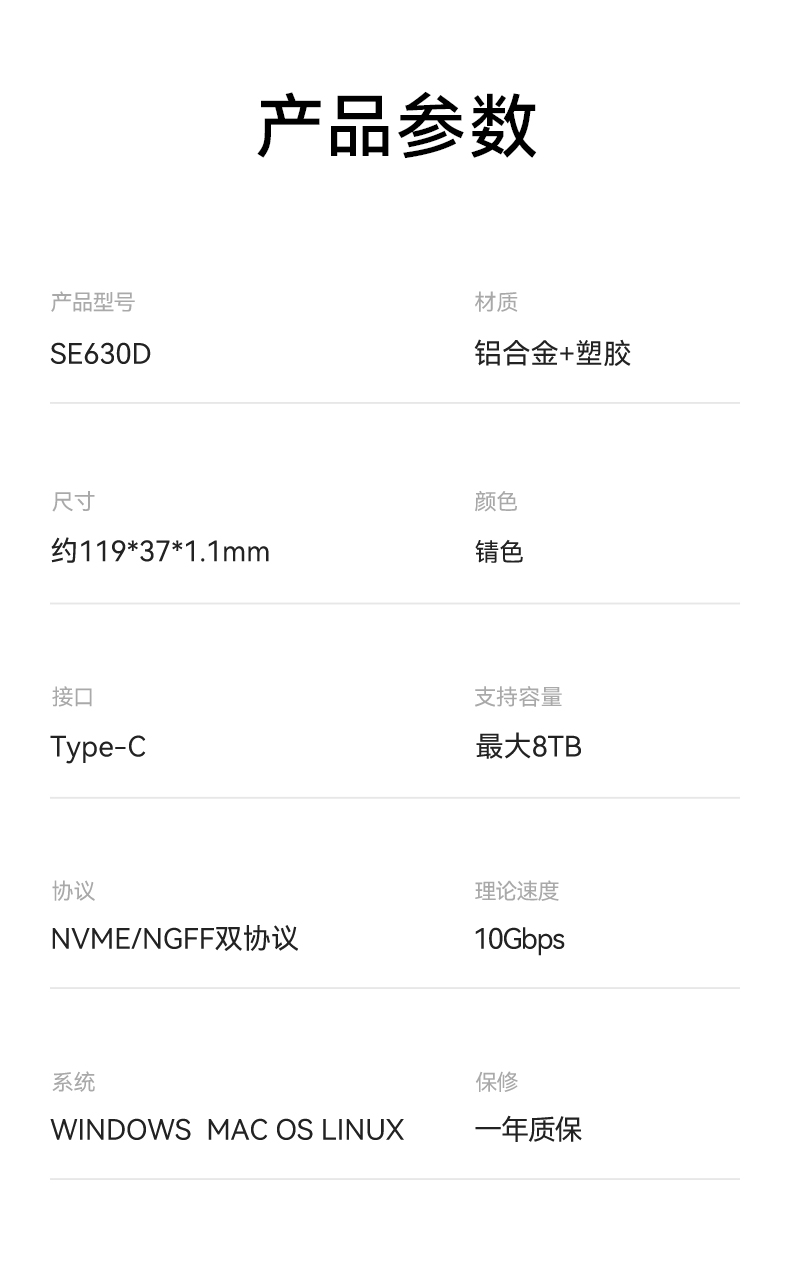 协议:NVME/NGFF双协议